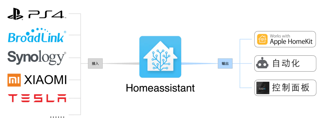 它支持多个不同平台的设备接入HA,然后通过HomeKit 进行统一控制。最早的时候该工具主要用于把米家的设备接入,然后使用苹果手机的Siri 来进行自动化控制。目前已经支持多个平台~