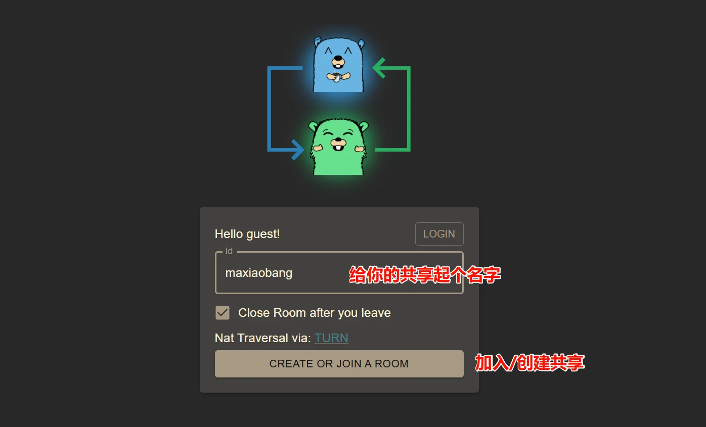 作者也提供了一个demo 打开就可以直接使用:https://app.screego.net/