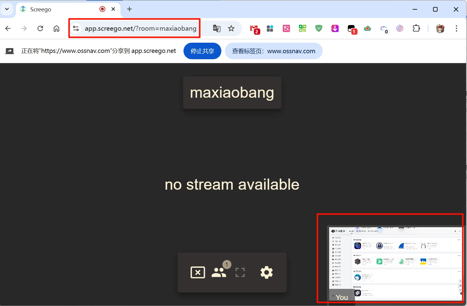 或者让其他用户在ScreeGo 中输入你的房间名字,加入你的房间,同样可以看到你分享的内容。支持多人同时加入这个房间查看你分享的屏幕内容。