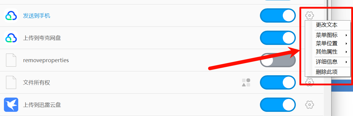 除了关闭开启,它还支持对右键菜单内容进行自定义