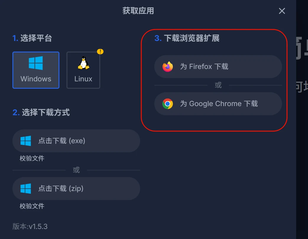 支持安装浏览器扩展程序,自动接管网络浏览器中的下载链接。