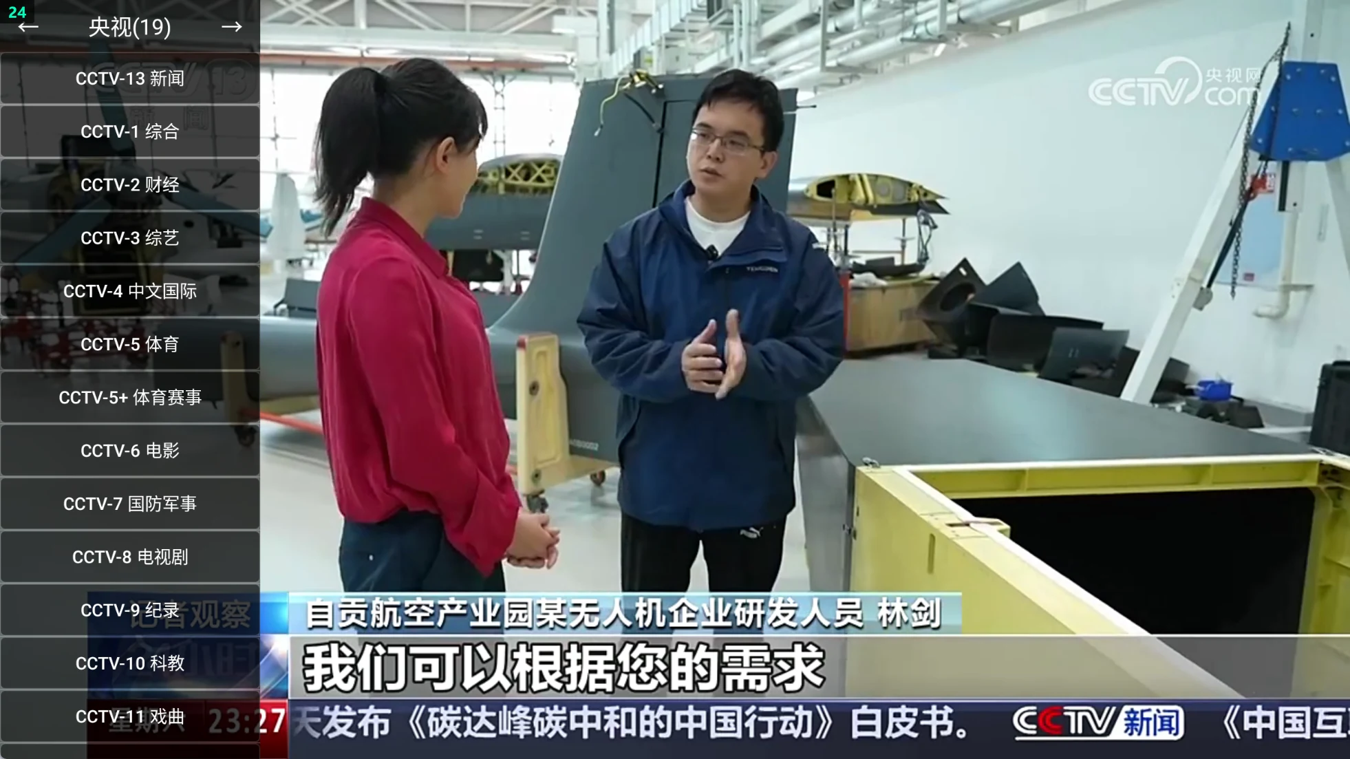 直播源其实就是用油桃TV打开央视网的CCTV电视直播,然后自动全屏播放,适配电视遥控器操作。