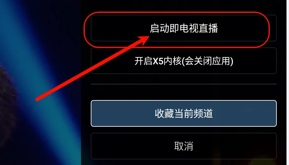 在电视直播页面,点击遥控器上的返回按键,还可以将电视直播设置为启动即打开电视直播,这样我们在打开油桃TV的时候就会直接播放电视直播。比较适合给家里的长辈使用。